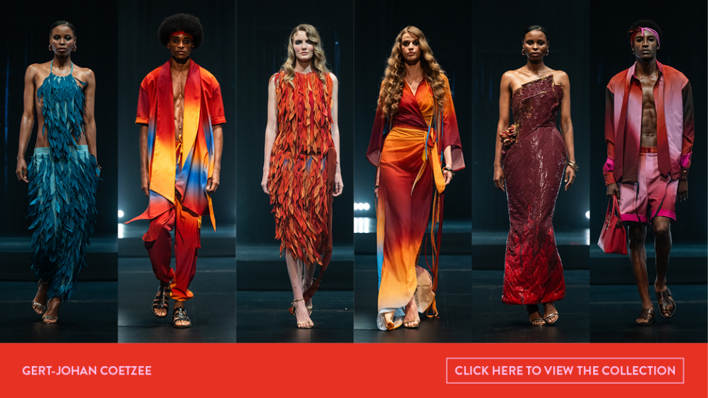For South African Fashion Week Spring Summer 2027, Gert Coetzee steps beyond the traditional runway to present Behind The Crimson Door, an evocative and immersive showcase that blurs the boundaries between fashion and performance. In collaboration with CIRK, the presentation unfolds as a live theatrical experience where couture meets aerial artistry and storytelling takes flight in the most literal sense.